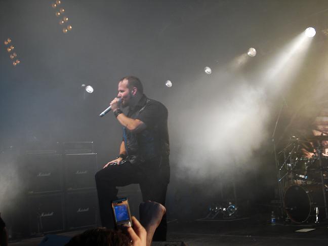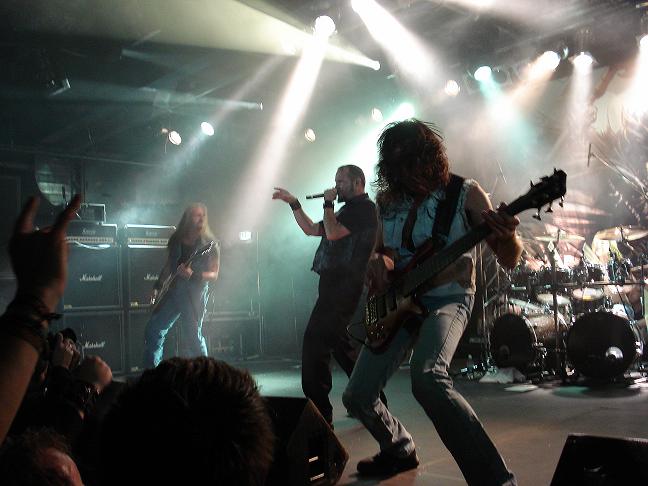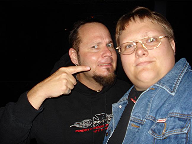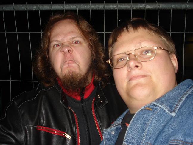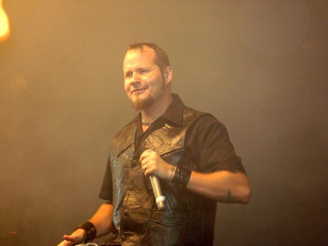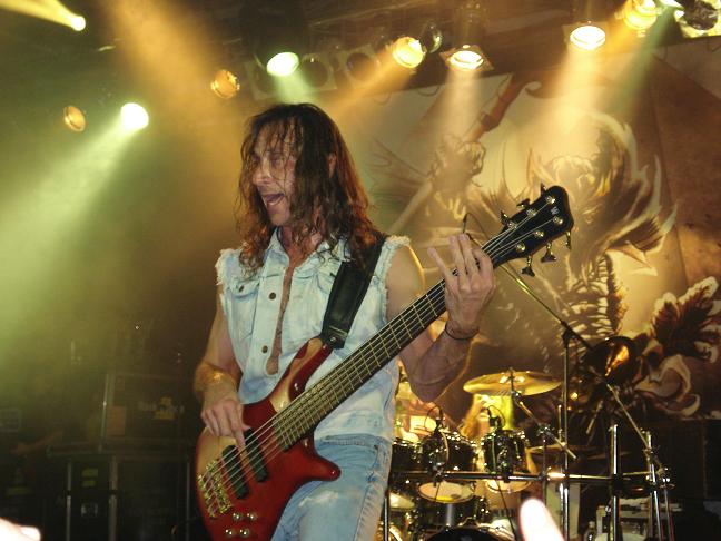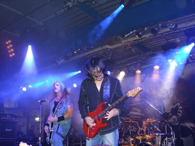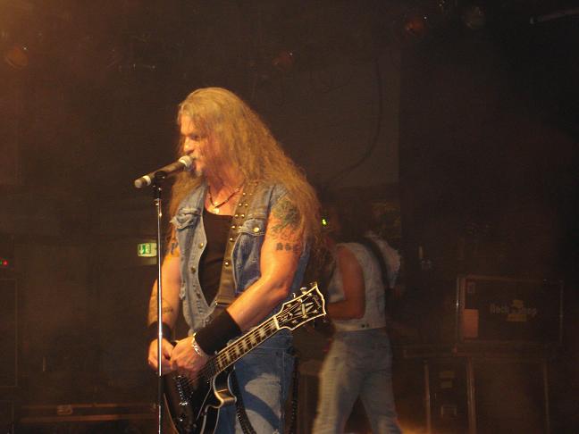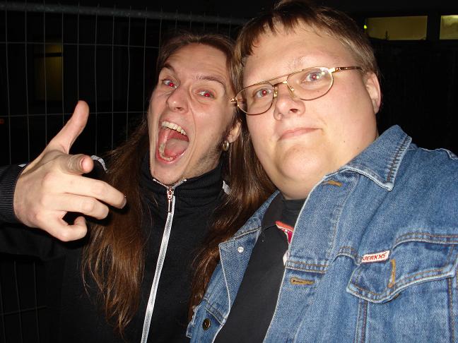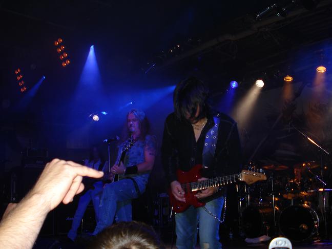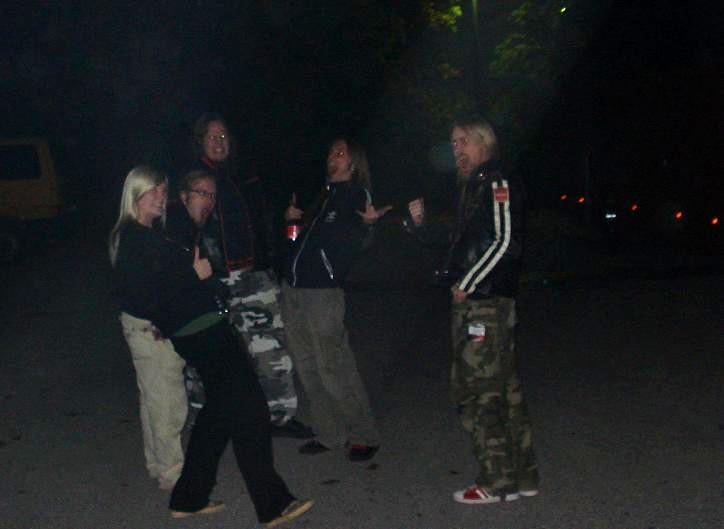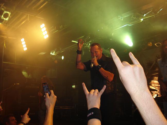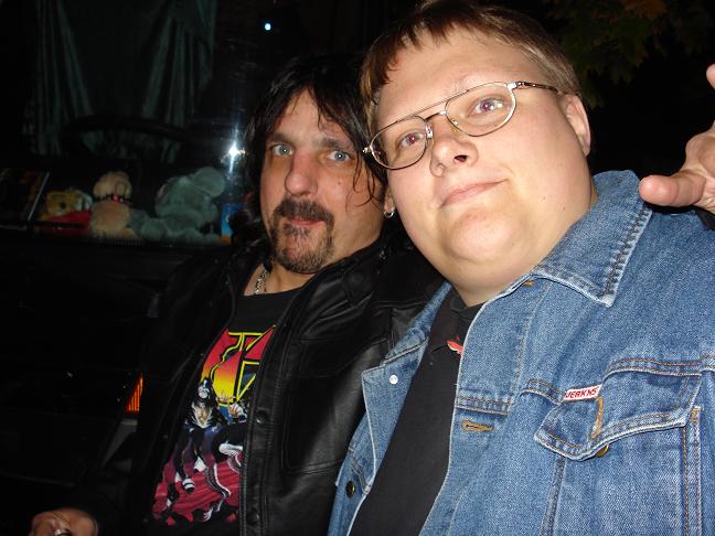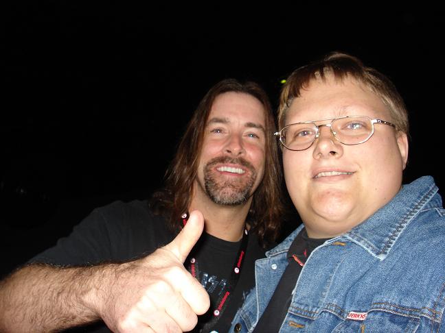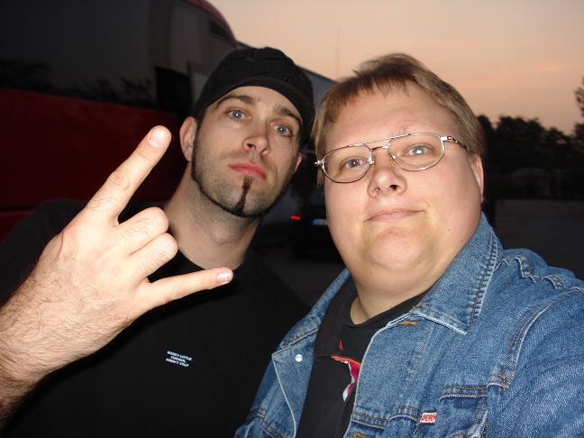 Diese Bilder entstanden nach der Show hinter der Halle! v. links nach rechts: Troy Seele, Tim Owens und Brett Smedley zusammen mit mir. Ganz rechts, der Bassist Dennis Hayes!