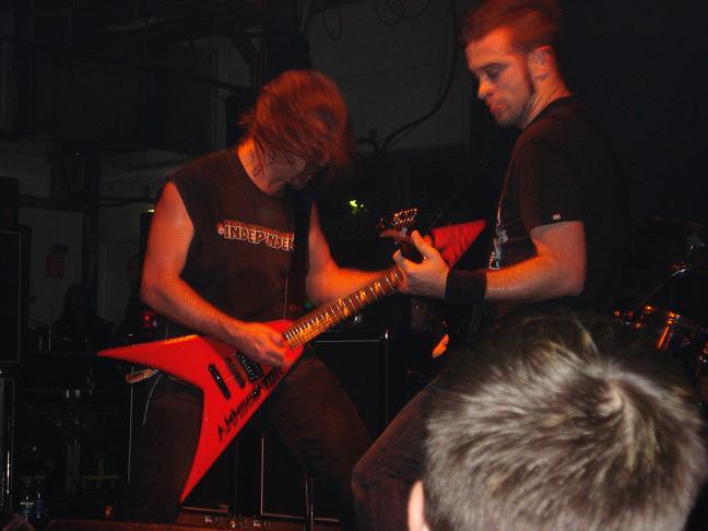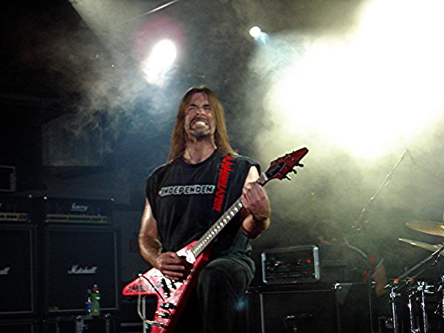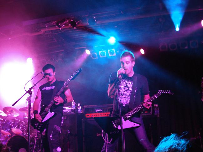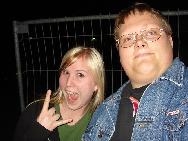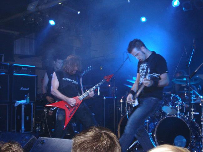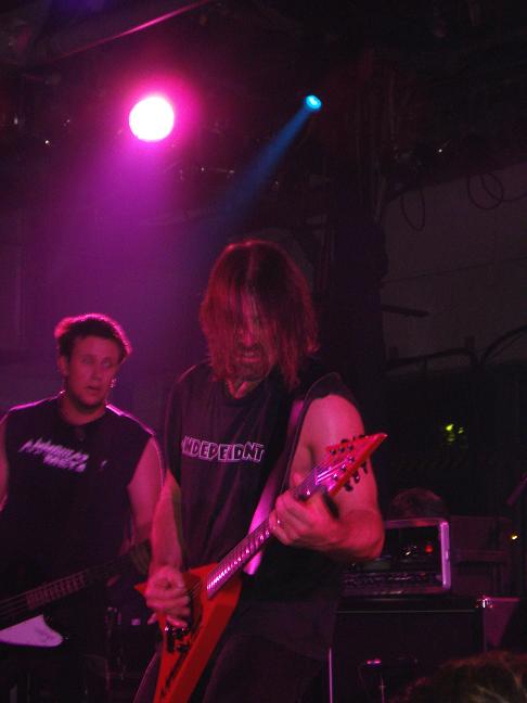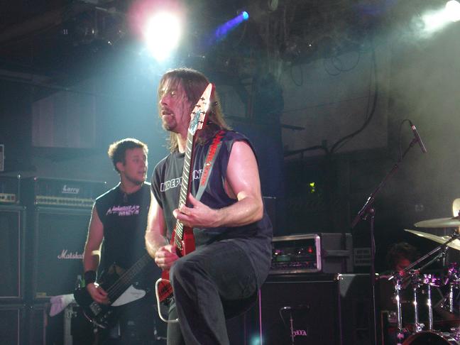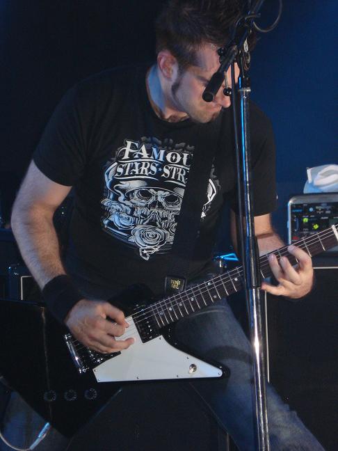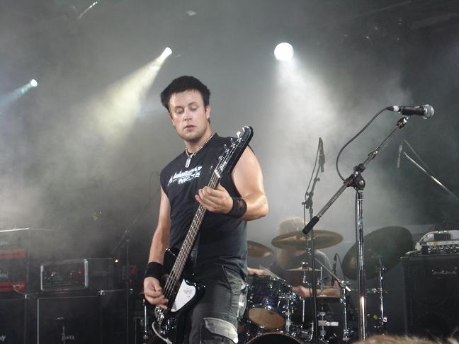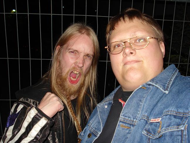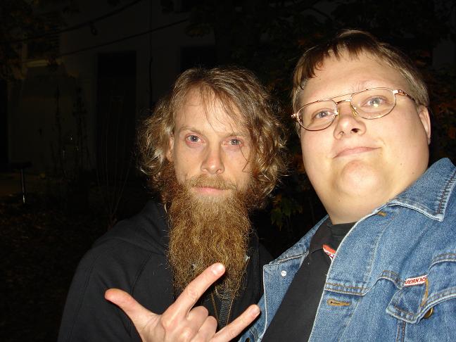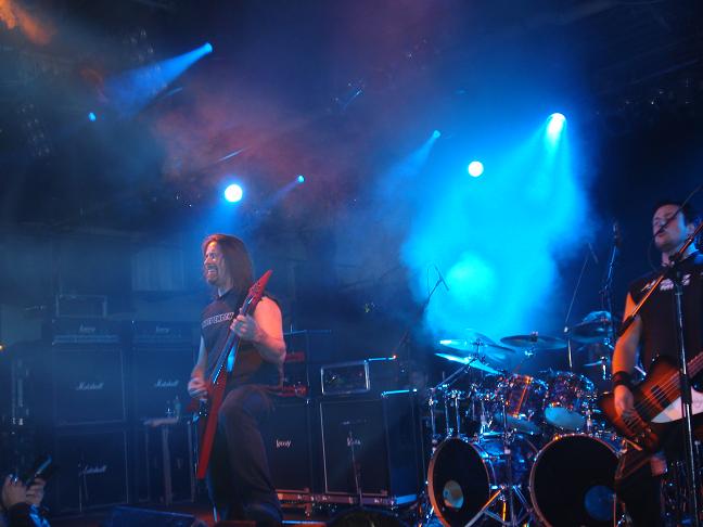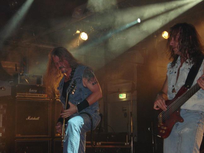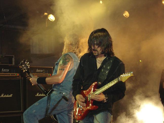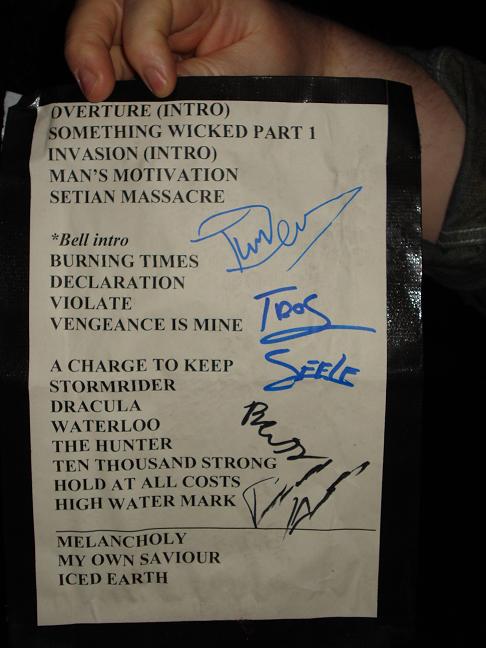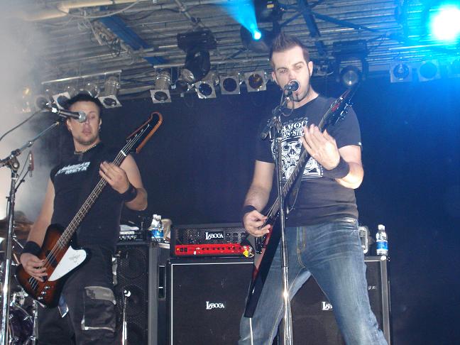 Diese Bilder entstanden nach der Show hinter der Halle! v. links nach rechts: Troy Seele, Tim Owens und Brett Smedley zusammen mit mir. Ganz rechts, der Bassist Dennis Hayes!