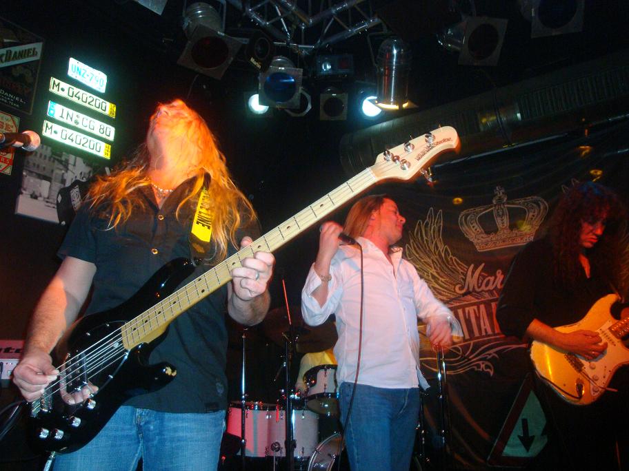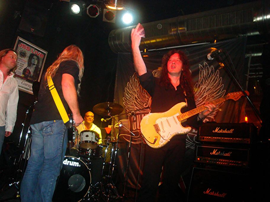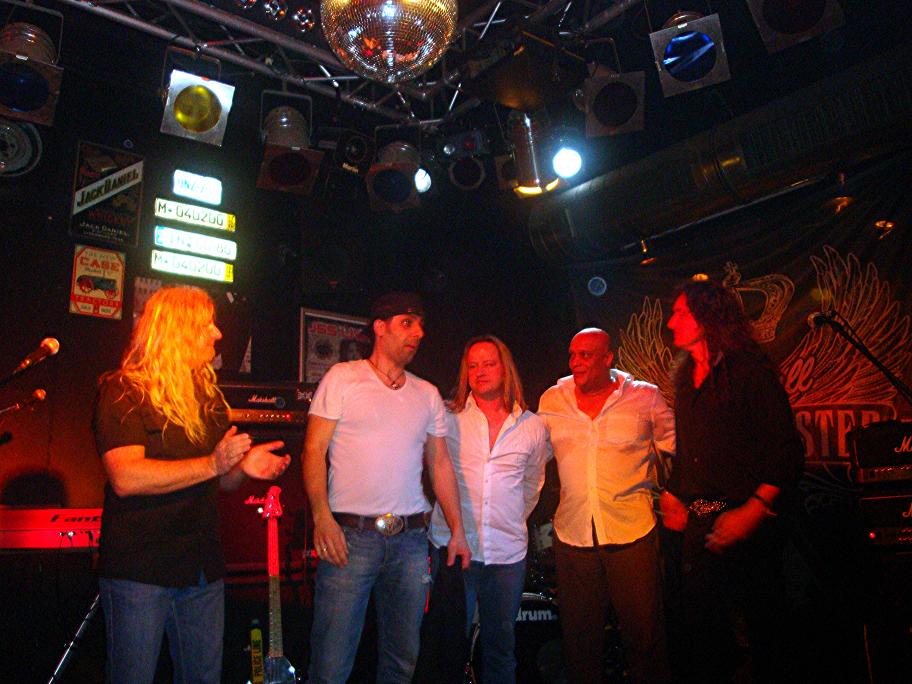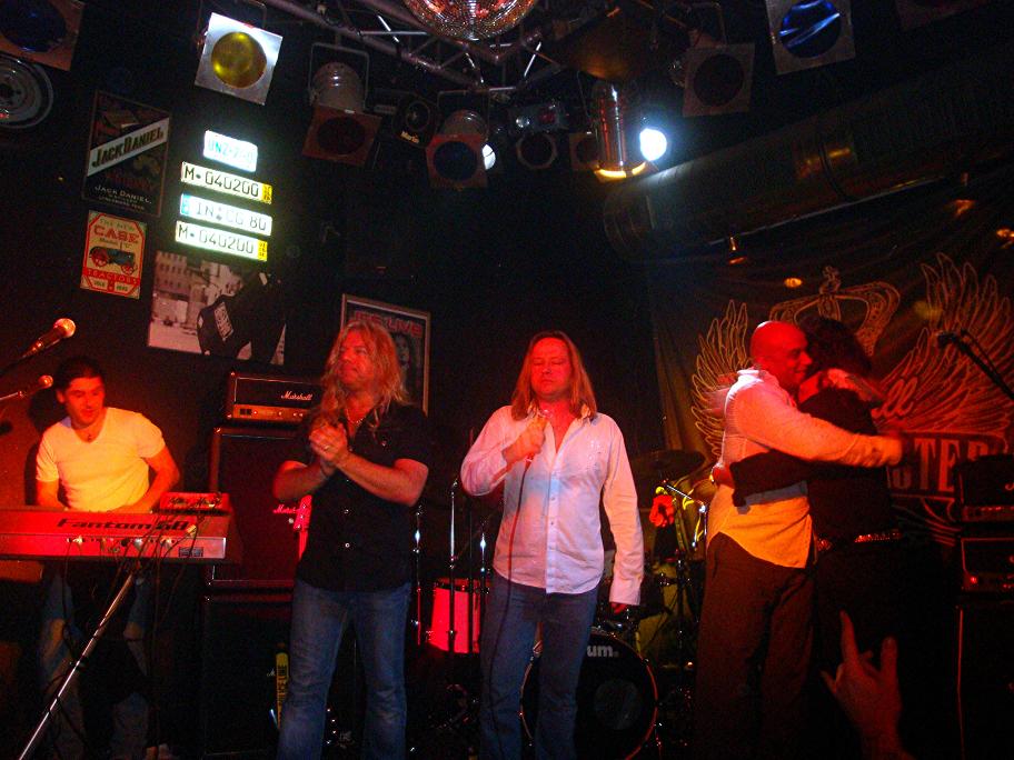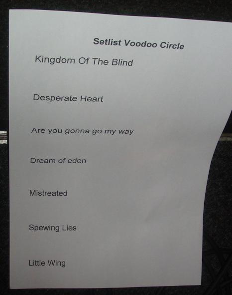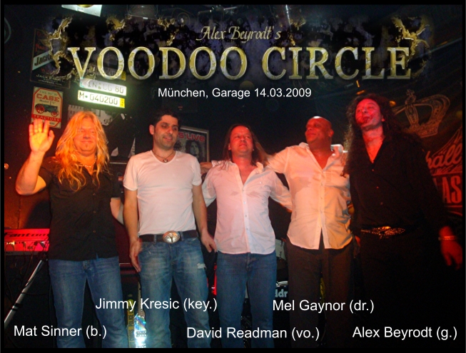 Gut, kommen wir auch schon zu VOODOO CIRCLE: Die Band um "Silent Force" Matermind Alex Beyrodt, Mat Sinner (muss man zu ihm noch etwas sagen?), David Readman (Pink Cream 69), Mel Gaynor (Simple Minds), Jimmy Kresic (arbeitet derzeit u.a. mit Steve Lukather). Kurz nach 23:00 Uhr betraten VOODOO CIRCLE die Bühne mit einem leider viel zu kurzen Set (7 Songs) bestehend aus VOODOO CIRCLE Songs und diversen Klassikern von Deep Purple (Mistreated) und Hendrix (Little Wing).