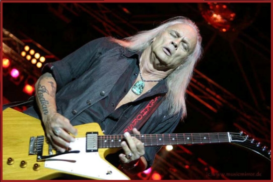 der Band lautstark mitsangen. Bis auf Rickey Medlocke, der über die Bühne fegte als wäre