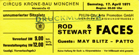 Eine original Konzertkarte der Faces von 1971. Nur 8 Monate nach dieser Veranstalltung erblickte meine Wenigkeit das Licht der Welt. Ja ja, wie die Zeit vergeht....!