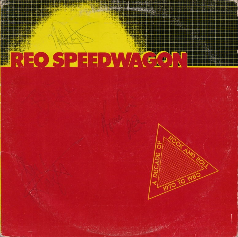 REO Speedwagon - A Decade of Rock And Roll 1980 LP signed by Alan Gratzer, Neil Daughty, Kevin Cronin and Bruce Hall