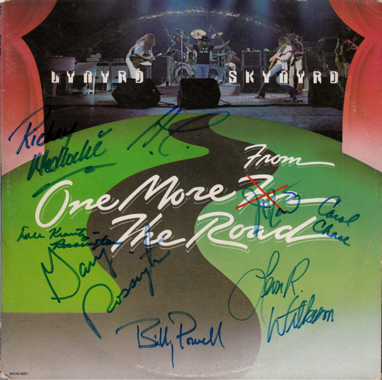 Das 1976´er Live Album signiert von Billy Powell, Leon R. Wilkinson, Gary Rossington, Dale Krant Rossington, Carol Chase, Johnny Van Zant, Ricky